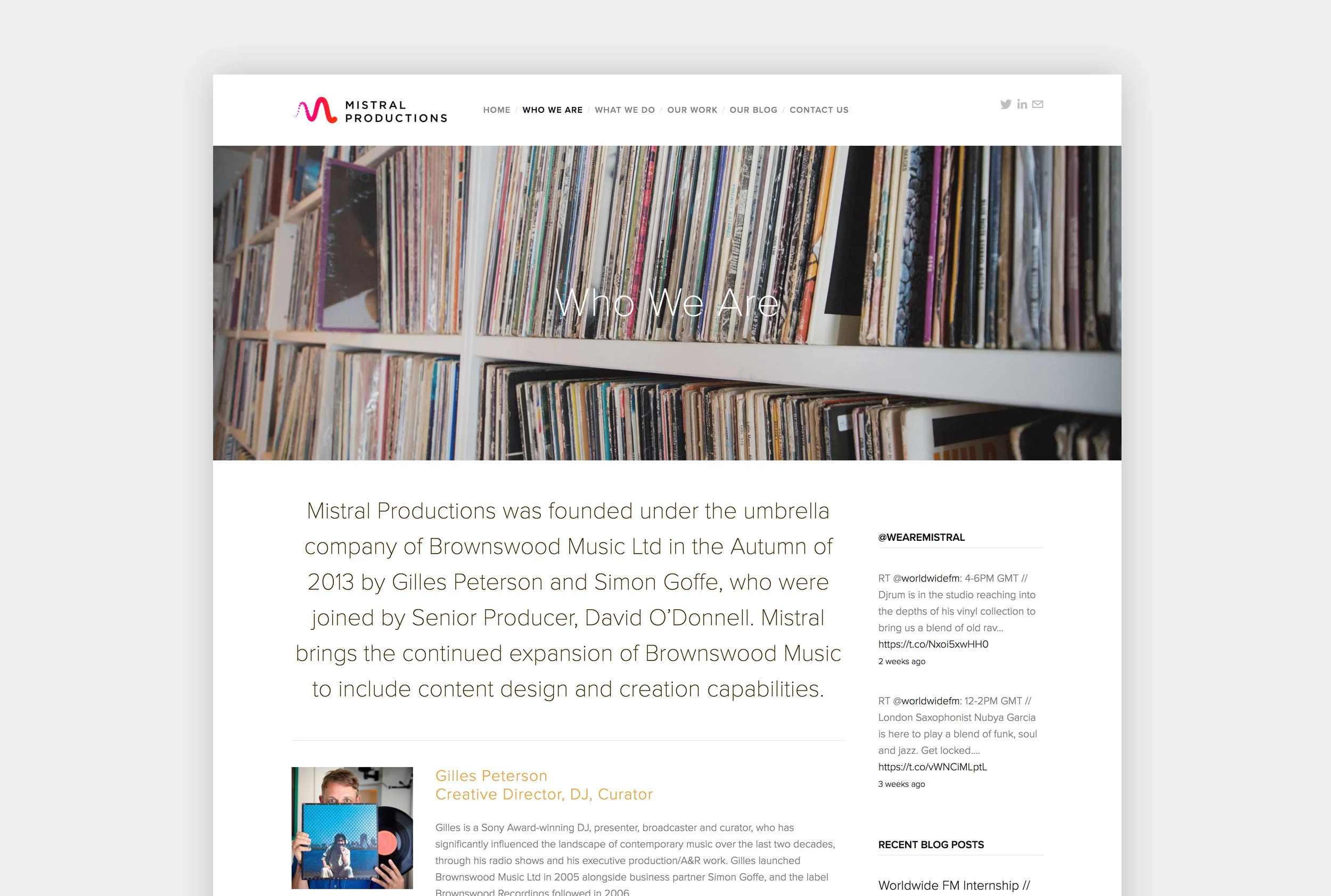 A visual identity for renowned DJ, Gilles Peterson’s new production company, Mistral Productions.